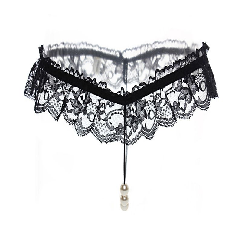 (情趣内衣)激情蕾丝开裆T裤女性低腰透明内裤蕾丝按摩开档性感丁字裤(黑色)